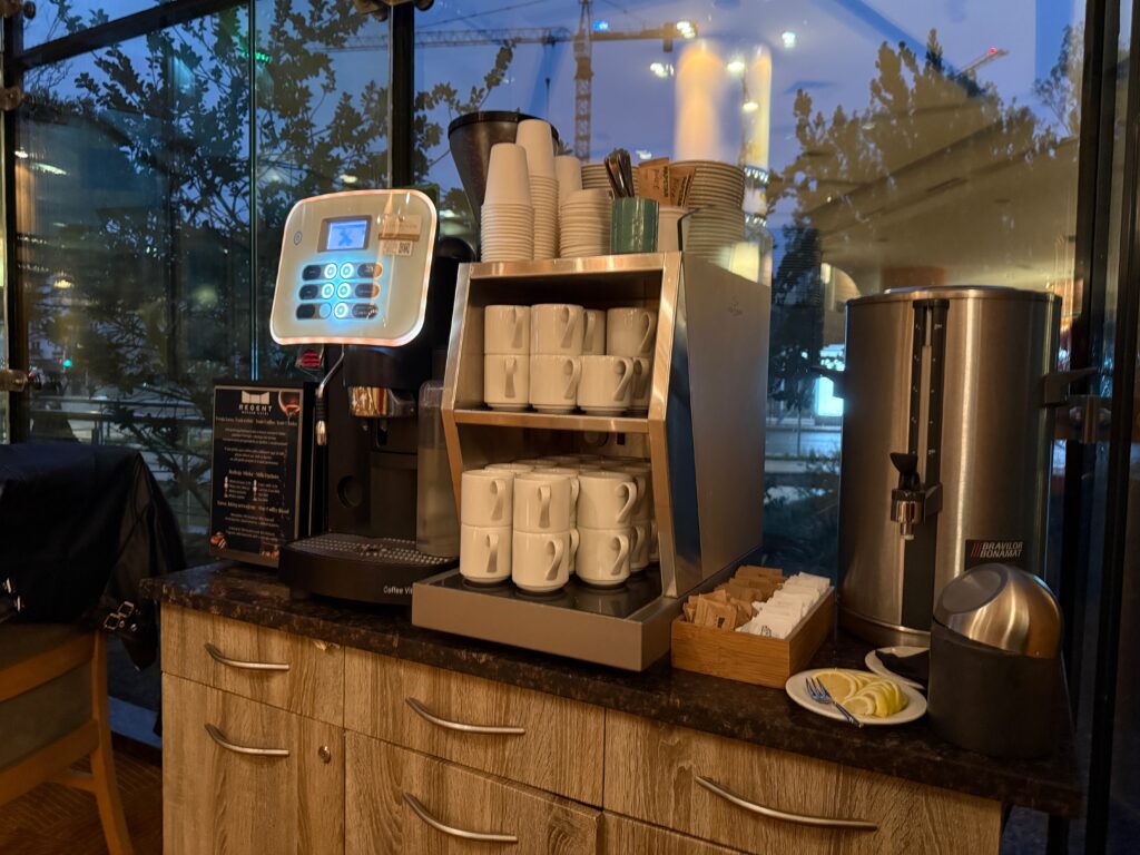 Wisienką na torcie indolencji hotelu w kwestii śniadania był fakt, że jeden jedyny ekspres do kawy, mający obsłużyć wszystkich uczestników tego posiłku nie działał. Obsługa nie tylko nie potrafiła okiełznać urządzenia, ale też nie poinformowała o jego awarii gości, co skutkowało tym, że ze względu na niefortunnie wybrany stolik w jego pobliżu, to my musieliśmy wielu z nich informować o tym, że ekspres nie działa. Jakby tego było mało, pracownicy nie wykazywali żadnej inicjatywy, aby osobom, które w oczywisty sposób szukały miejsca, w którym mogą zdobyć (sic!) kawę pomóc. Dopiero po dłuższej chwili zaczęły płynąć szczątkowe komunikaty od niektórych Kelnerów, że alternatywną kawę można otrzymać w barze, a ostatecznie ekspres został naprawiony, gdy już opuszczaliśmy restaurację.