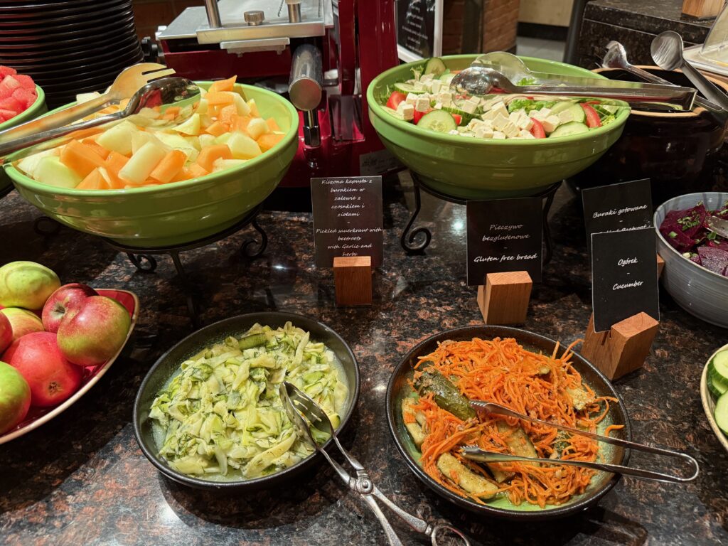 Sama oferta bufetowa budzi w nas mieszane uczucia. Z gotowych jajek po benedyktyńsku zadowoleni byliby zapewne męczący je za każdym razem blogerzy-maskotki branży hotelarskiej. Na pochwałę zasługuje – według nas – obecność wśród pieczywa chałki, której notorycznie brakuje nam w innych obiektach. Reszta zawartości bufetu była mieszaniną rzeczy dobrych i mniej dobrych.