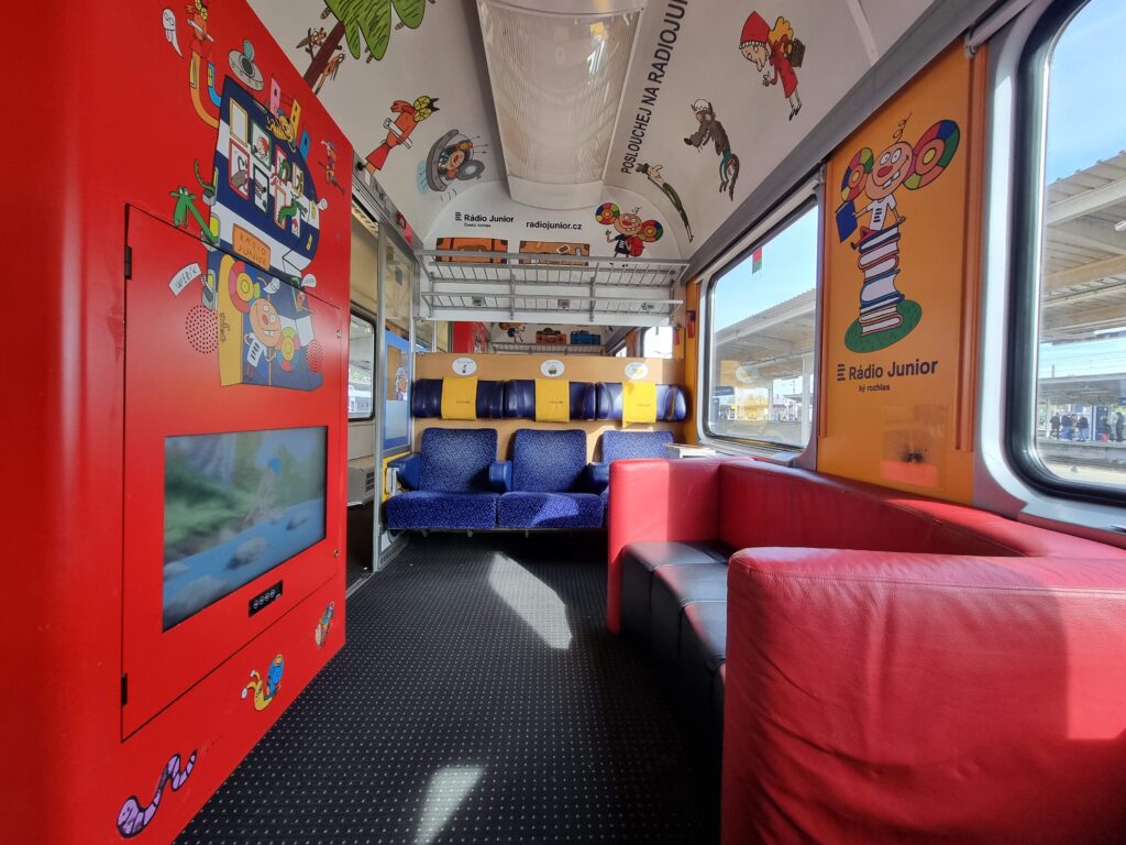 W jednym z wagonów przewidziano specjalny przedział dla rodzin z dziećmi, gdzie najmłodsi podróżni mają swoje dedykowane miejsce do zabawy i odpoczynku.