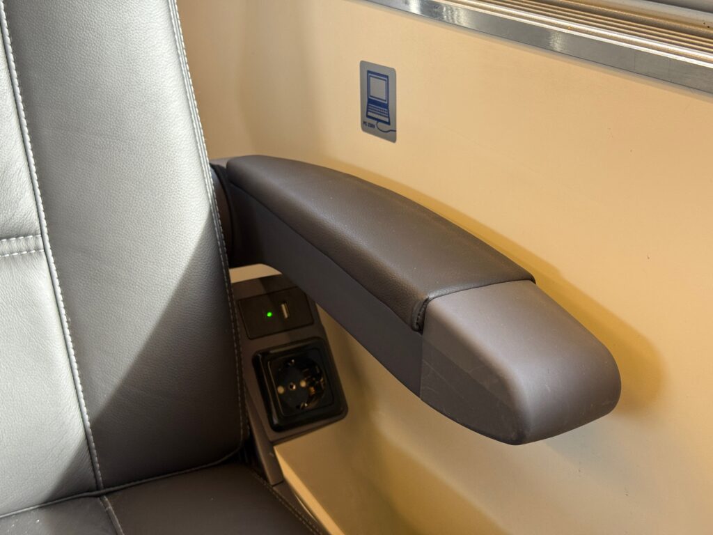 Każde siedzenie wyposażone jest w indywidualne gniazdko elektryczne oraz stolik.