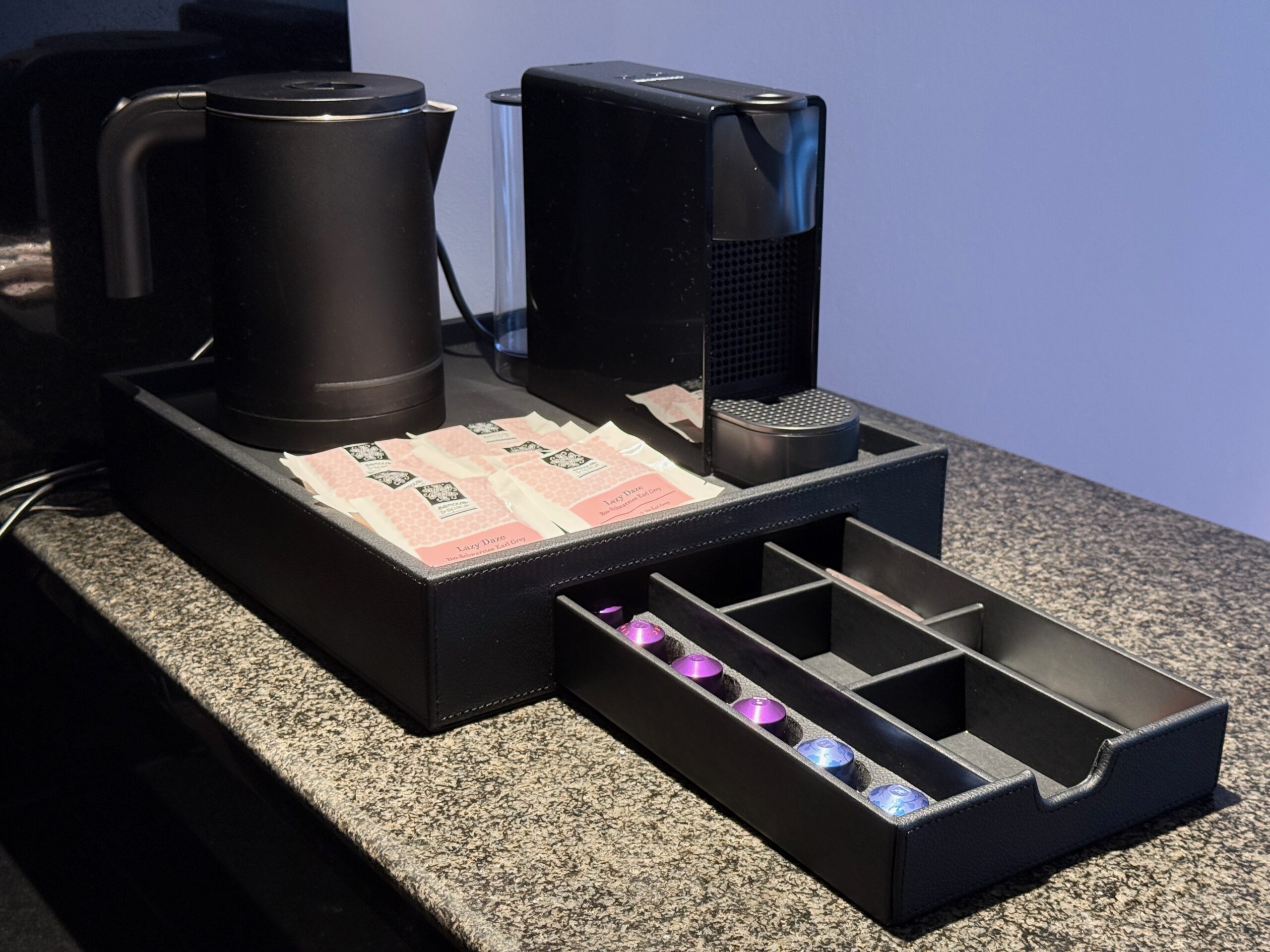 Conrad Hamburg – 820 King Duplex Studio – aneks kuchenny – ekspres do kawy, czajnik, zestaw do parzenia kawy i herbaty