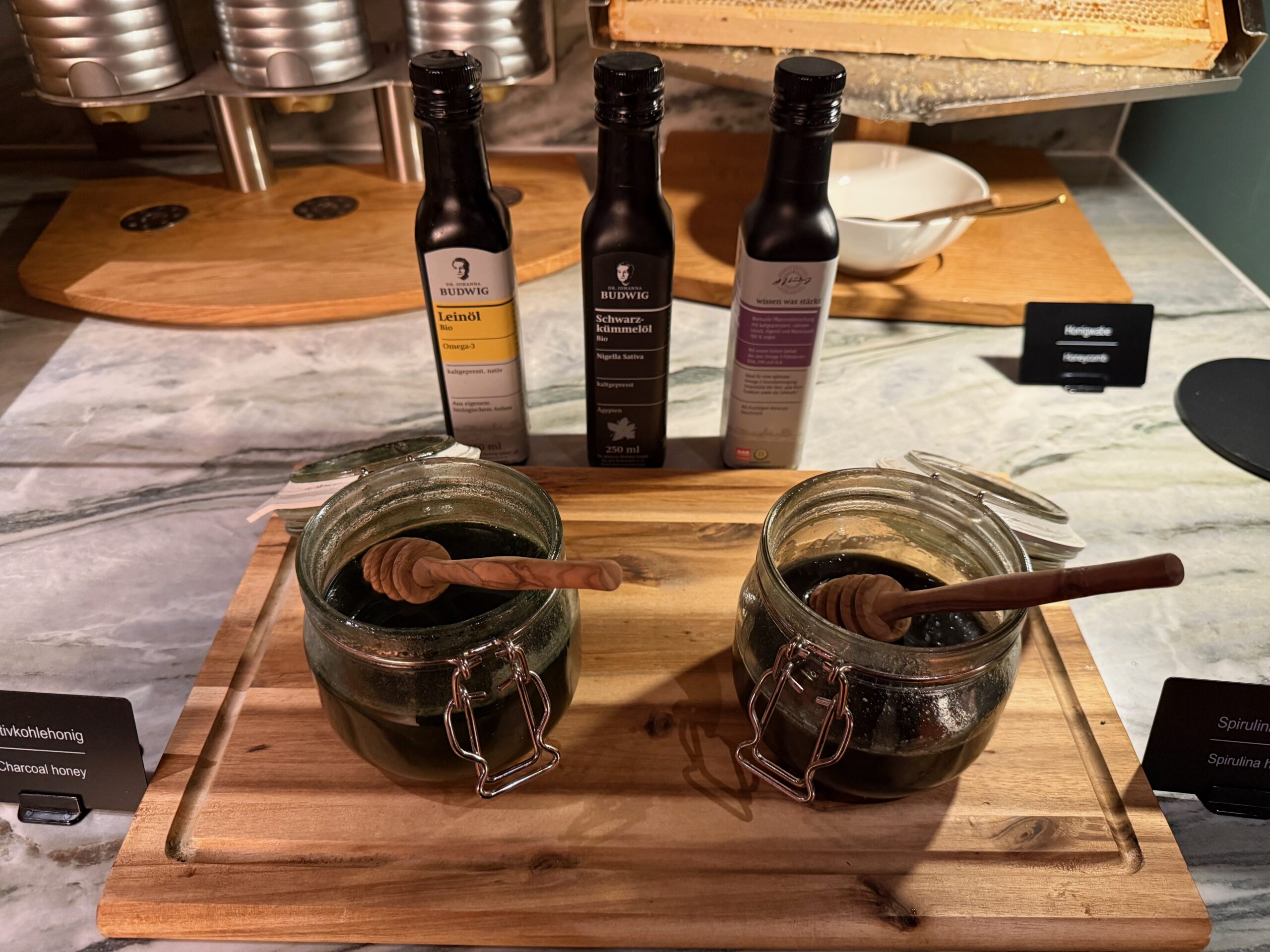 Conrad Hamburg – GRETA OTO Restaurant – śniadanie – bufet – miody, oleje