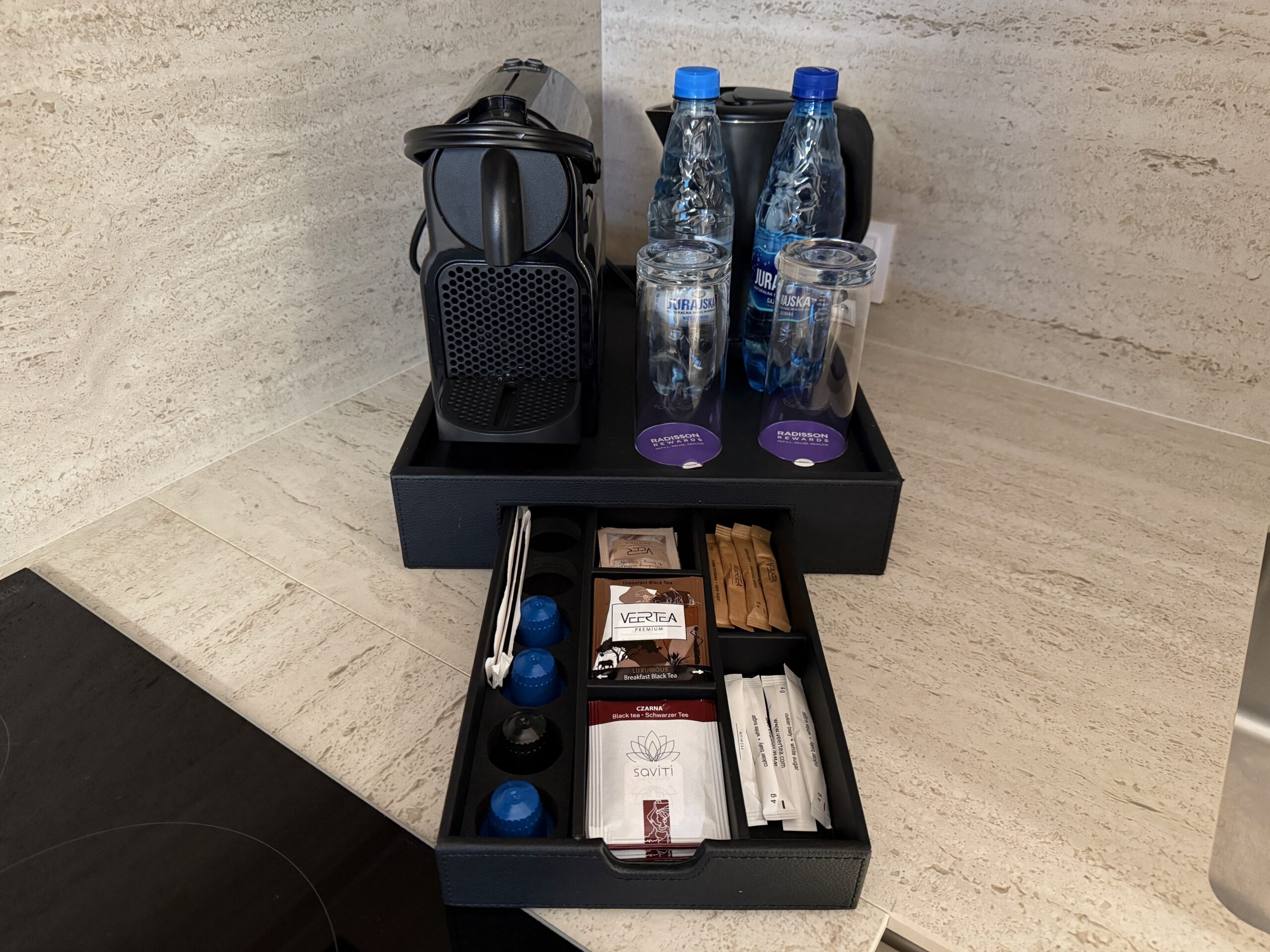 BALTIC VIEW Resort & SPA a member of Radisson Individuals, Międzyzdroje – 402 Superior Room – Sea View – aneks kuchenny – zestaw do parzenia kawy i herbaty