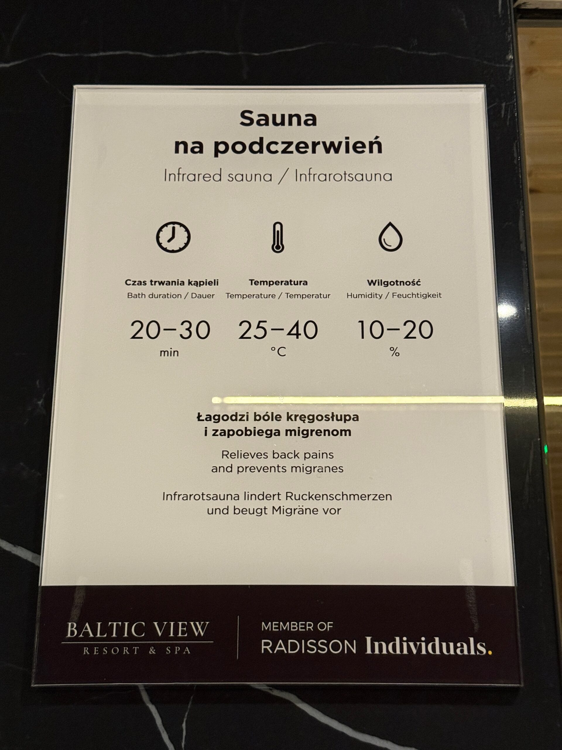 BALTIC VIEW Resort & SPA a member of Radisson Individuals, Międzyzdroje – strefa saun – sauna na podczerwień – informacje