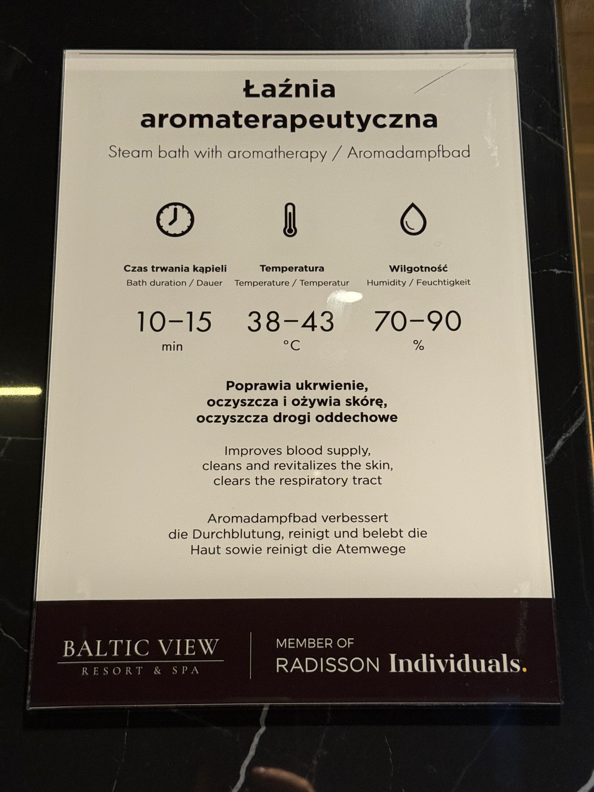 BALTIC VIEW Resort & SPA a member of Radisson Individuals, Międzyzdroje – strefa saun – łaźnia aromoterapeutyczna – informacje