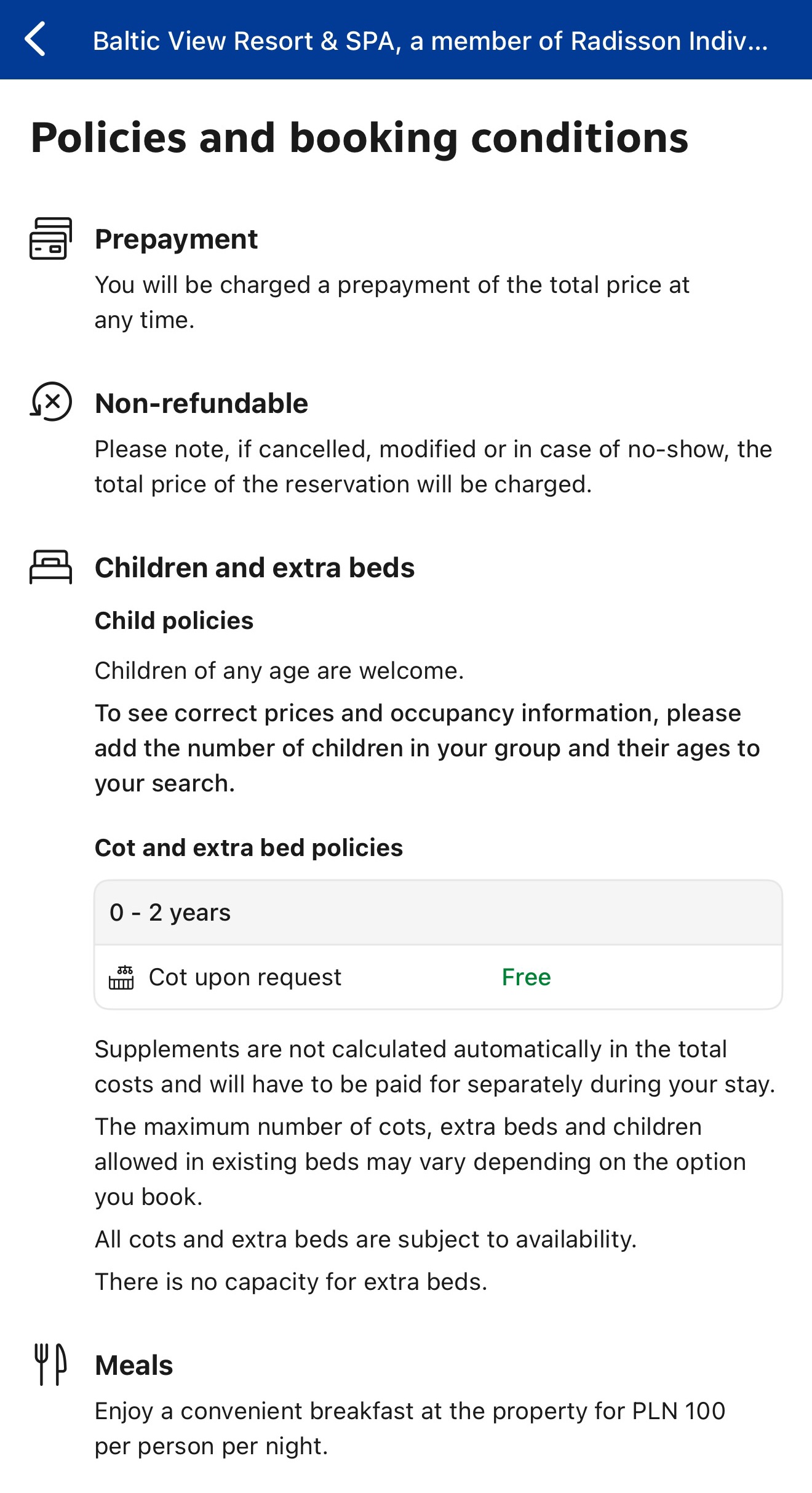 BALTIC VIEW Resort & SPA a member of Radisson Individuals, Międzyzdroje – dopłata za śniadanie (strona booking.com)