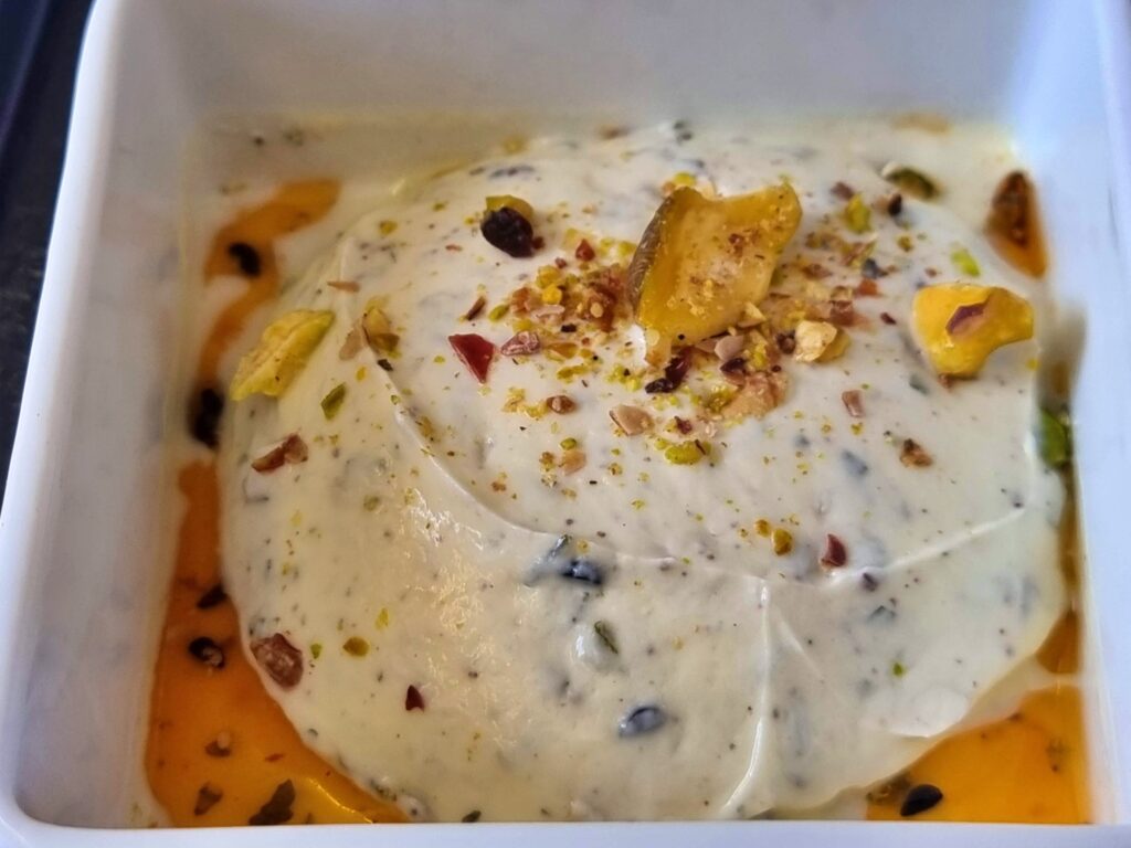 Na godzinnym rejsie w godzinach przedpołudniowych zaserwowano nam śniadanie. Głównym elementem jest tu smørrebrød, czyli tradycyjna duńska otwarta kanapka, do tego za’atar – kremowy dip o ziołowym smaku z pistacjami oraz sernik baskijski.
