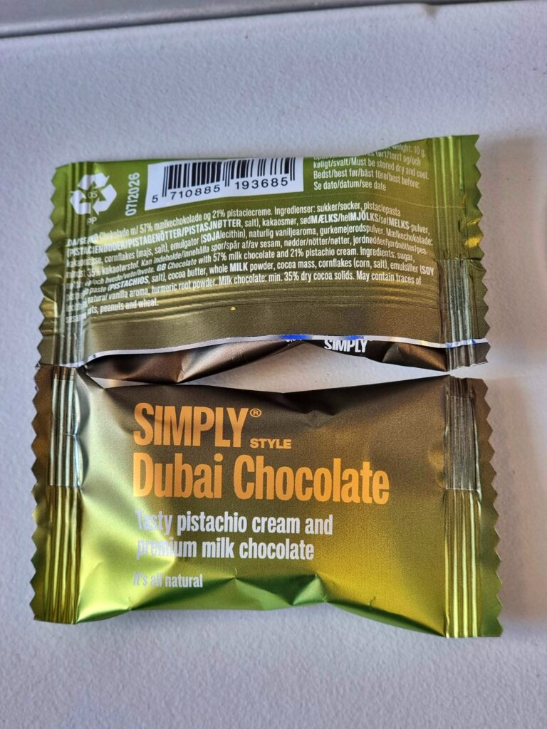 Przed lądowaniem otrzymujemy jeszcze małe czekoladki dubajskie.