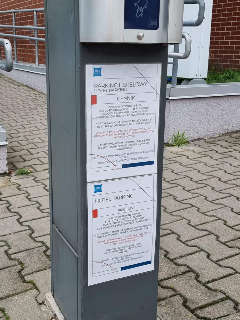 Do hotelu docieramy po południu. Bez problemu znajdujemy miejsce na parkingu. Zauważamy też, że cena postoju auta różni się w zależności od tego, jakim językiem posługujemy się jako konsumenci informacji na ten temat.