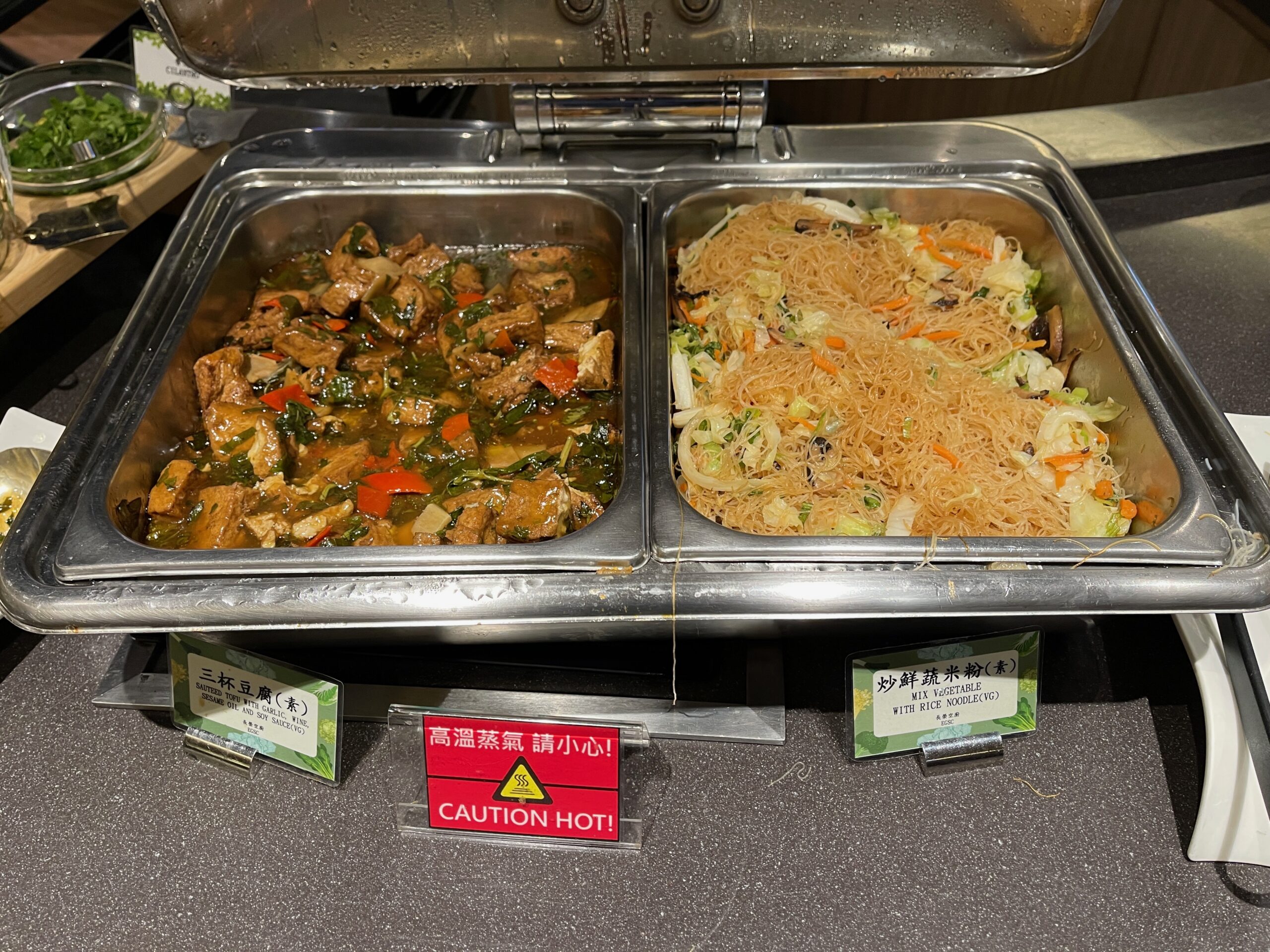 EVA Air The Star Lounge, Tajpej Taoyuan (TPE) – tofu z czosnkiem i przyprawami, miks warzyw z makaronem ryżowym