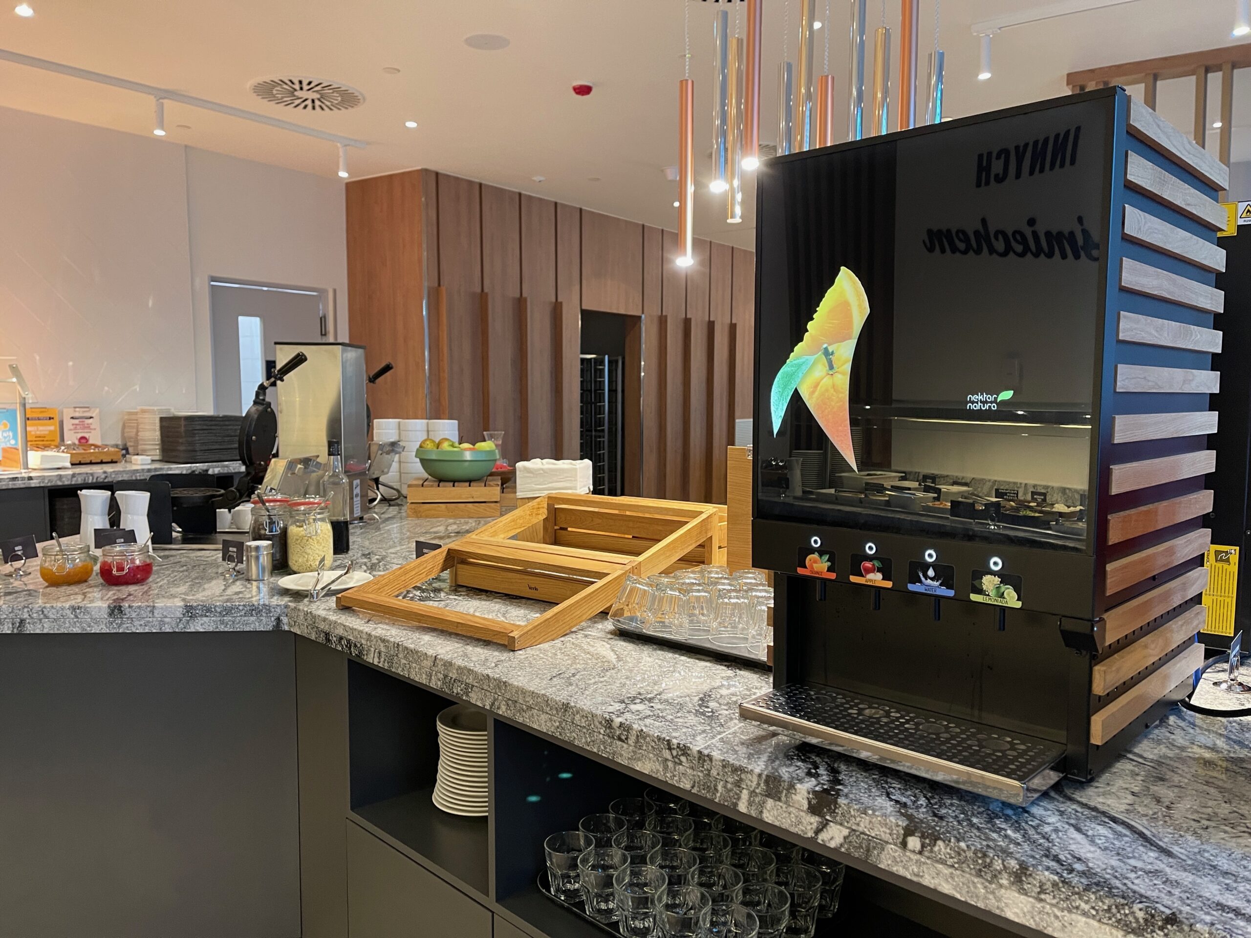 Hampton by Hilton Łódź City Center – śniadanie – bufet – soki, woda