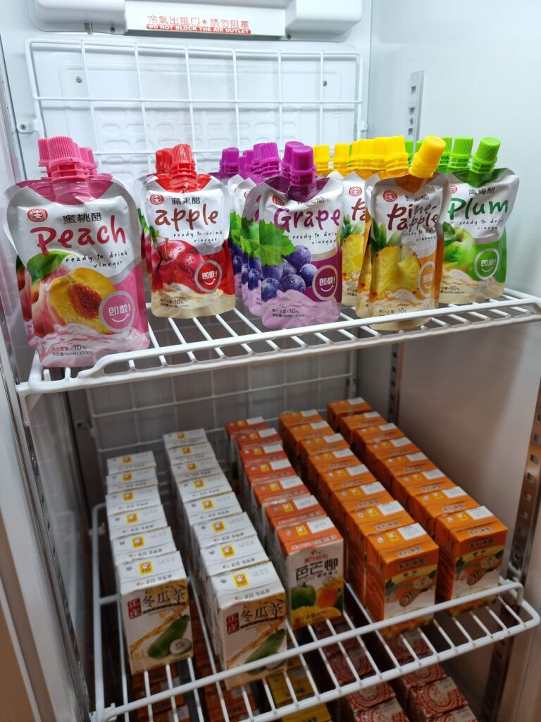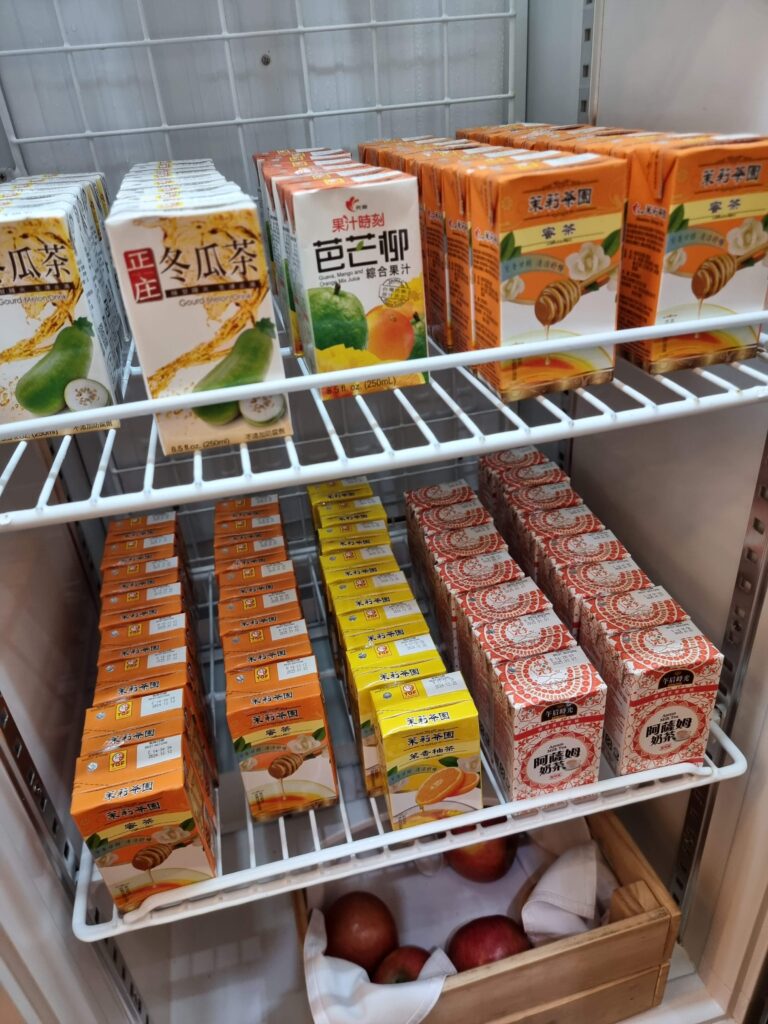 Bardzo ucieszyła nas również rozbudowana oferta lodówki z napojami – zarówno owocowymi, jak i tymi bazowanym na mleku, najczęściej sojowym.