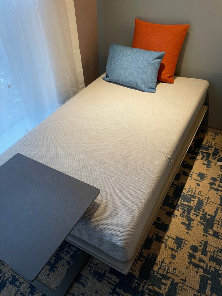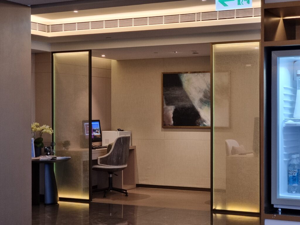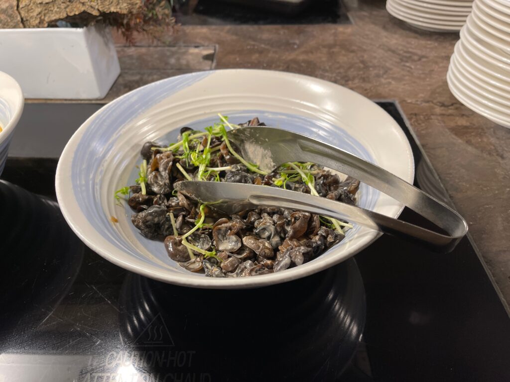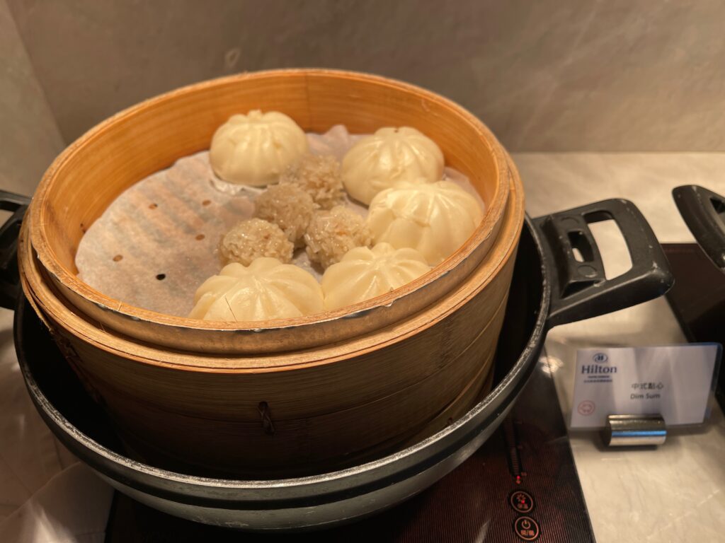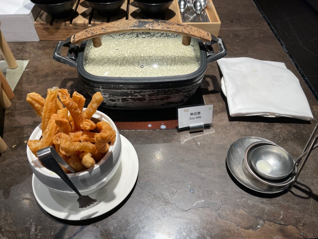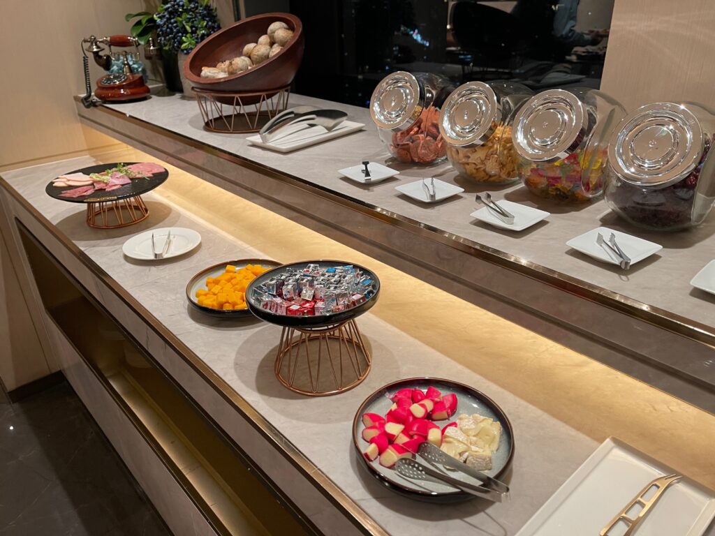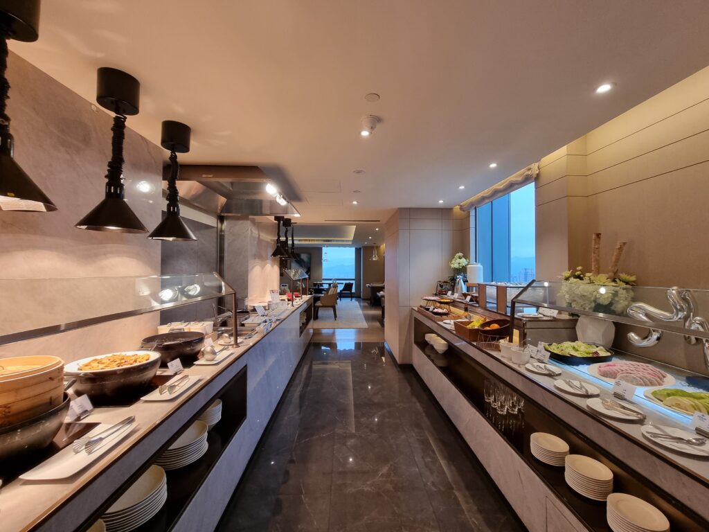 Jednym z miejsc, gdzie goście mogą skorzystać z oferty pierwszego posiłku dnia jest Executive Lounge. Między godziną 6:30 a 10:30 jest ono podawane w formie bufetu, z dodatkową stacją live cooking. Wybór dań z oczywistych powodów jest ograniczony – szczególnie w zestawieniu z ofertą dostępną w restauracji Yue Market Flavor. Mimo wszystko, chętni znajdą tu wszystkie podstawowe pozycje obowiązkowe w ramach śniadań hotelowych, oraz, co dla części osób może być ważniejsze niż sam posiłek – spokój i ciszę, pozwalające wejść w nowy dzień łagodnie i bez stresu.