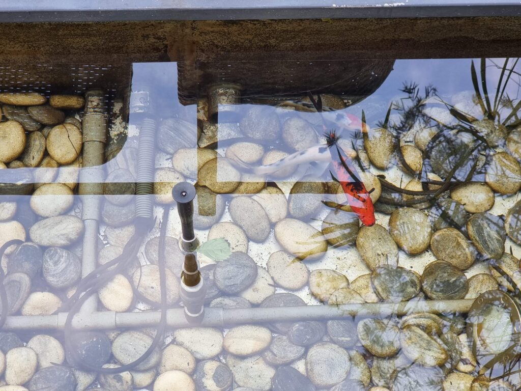 Salonik oferuje gościom również dostęp do tarasu na świeżym powietrzu, z interesującymi widokami. Oprócz imponującej ilości i jakości zieleni, odwiedzający to miejsce znajdą tam również płynącą rzekę – akwarium z żywymi rybkami.
