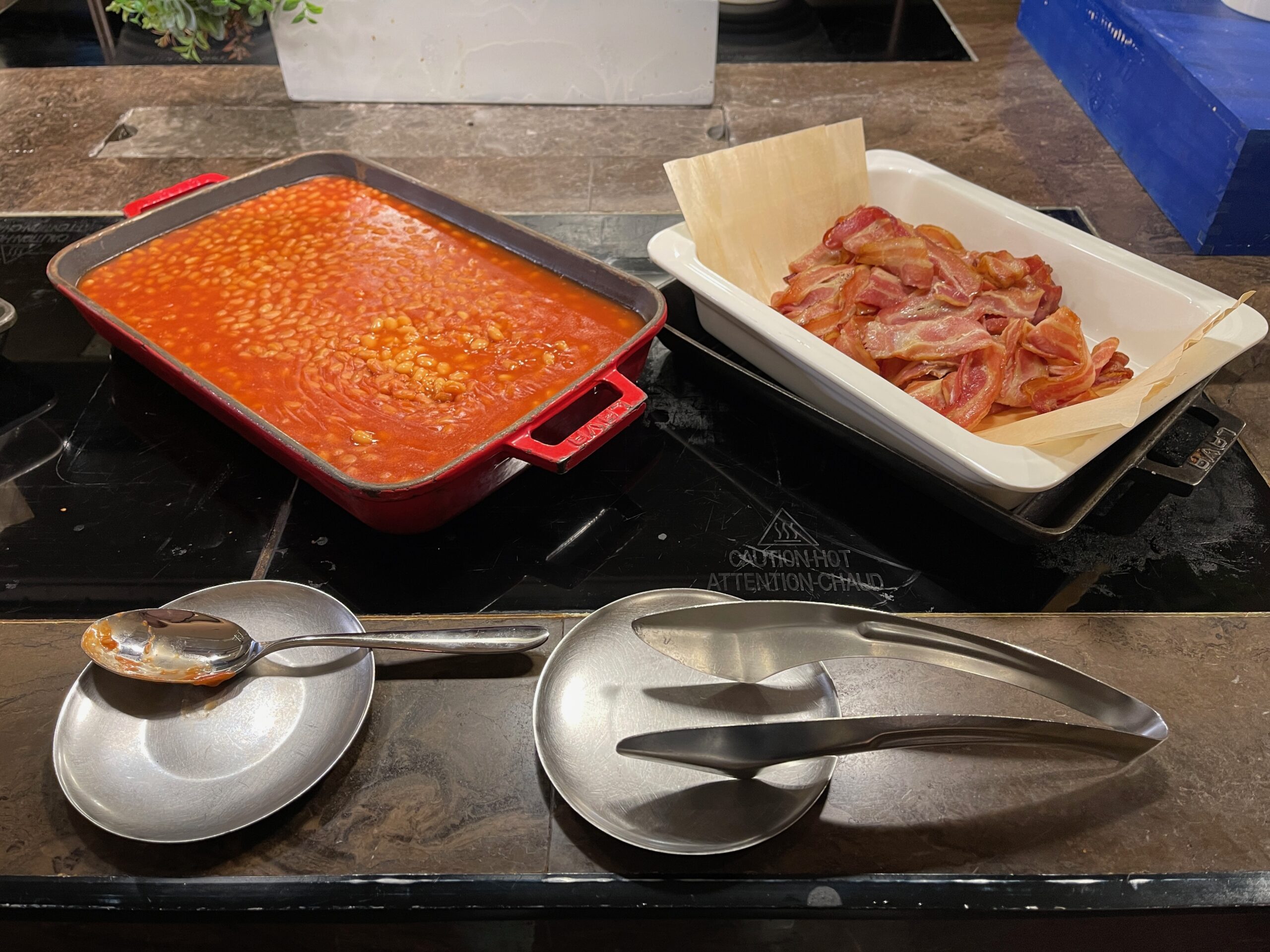 Hilton Taipei Sinban – Restauracja Yue Market Flavor – śniadanie – bufet – fasolka w sosie pomidorowym, bekon