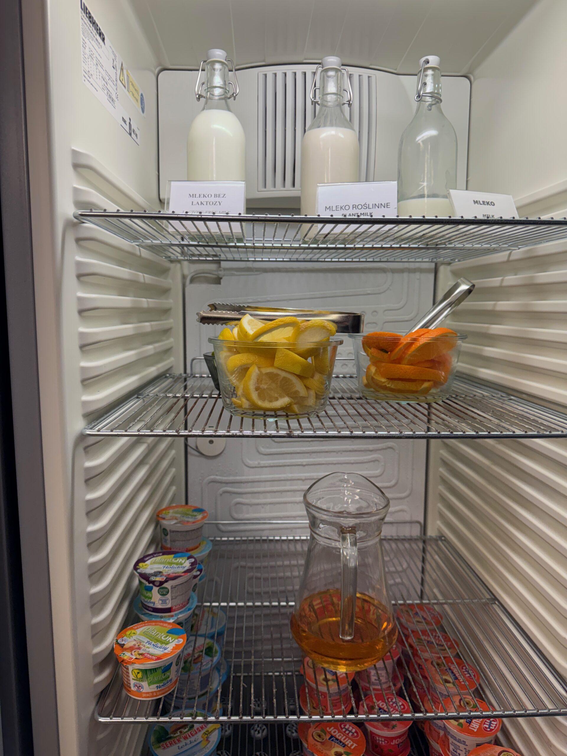 Salonik Executive Lounge, Wrocław – bufet – lodówka – mleka, jogurty, dodatki
