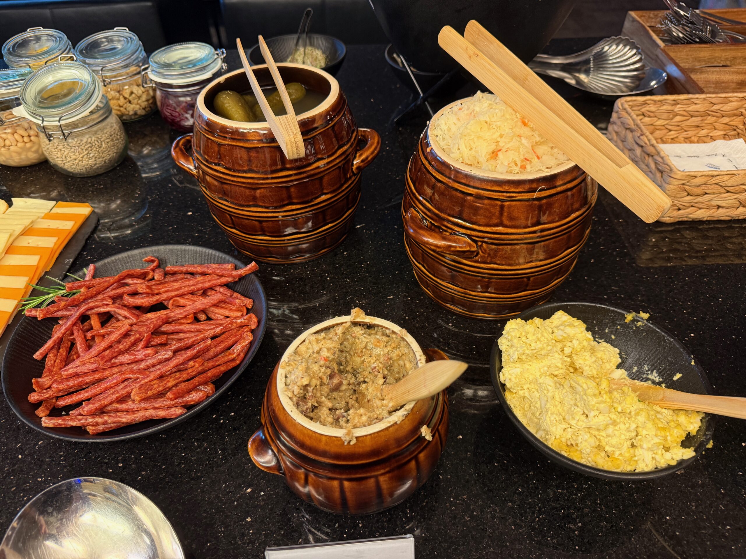 Salonik Executive Lounge, Wrocław – bufet – kabanosy, smalec, kiszona kapusta, kiszone ogórki